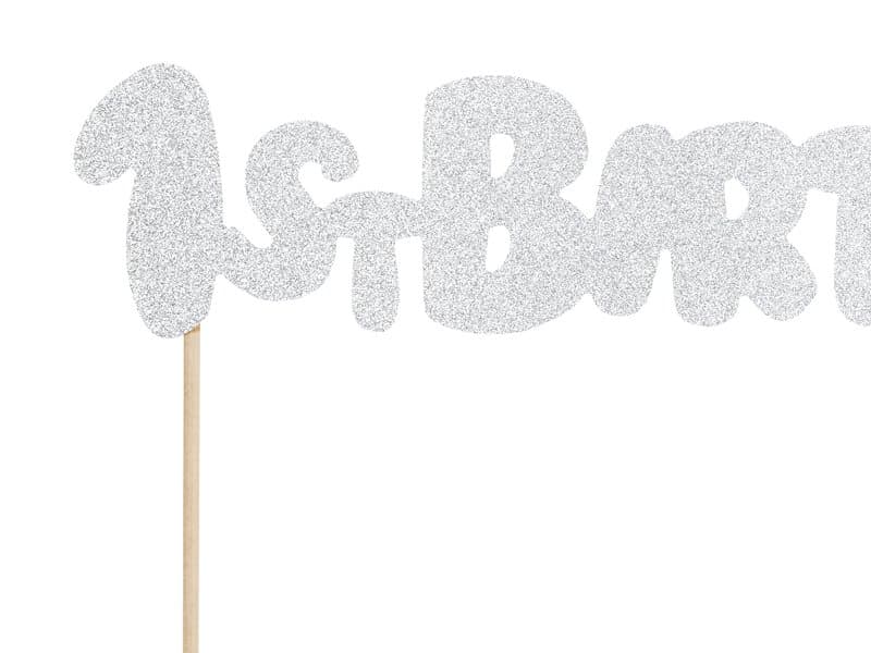 Napichovátko na dort - 1. narozeniny, stříbrný třpyt, výška cca 19,5 cm.