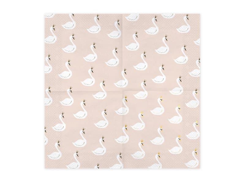 Ubrousky krásná labuť s potiskem v béžové barvě, velikost po rozložení 33 x 33 cm, po složení 16,5 x 16,5 cm, v balení 20 ks.