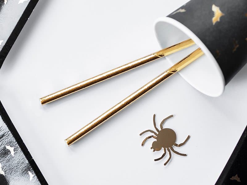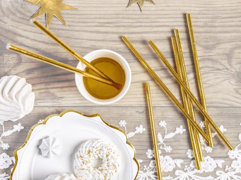 Papírová brčka, hladká, kovová, zlatá, délka 19,5 cm, v balení 10 ks.