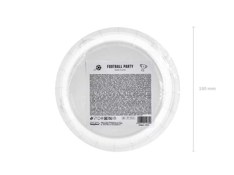 Papírové talíře s matným potiskem s fotbalovým motivem, o průměru 18 cm, 6 ks v balení.