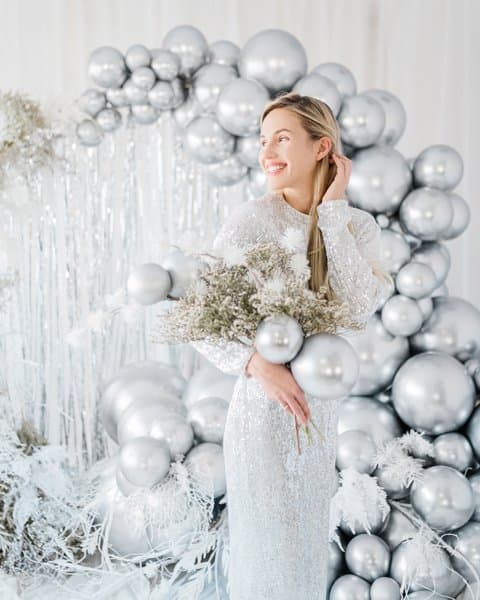 Kulatý lesklý balónek, o průměru 60 cm, stříbrný.